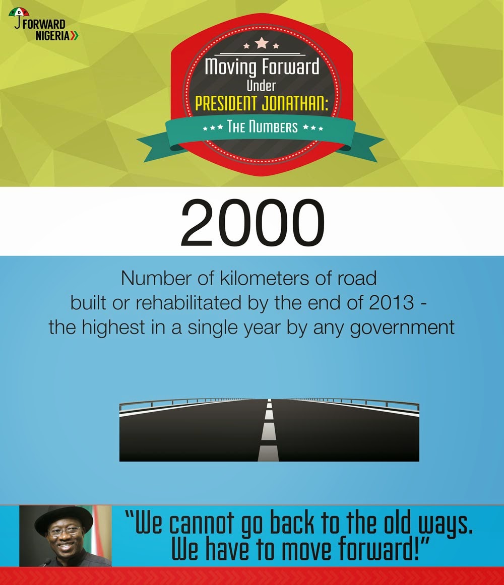 2. He is fixing Nigeria’s roads faster than any government has ever done before! 2,000 km of Federal roads were either built or rehabilitated in 2013 alone. That’s a record for a single year.