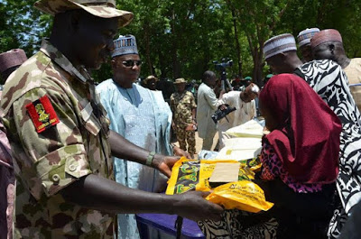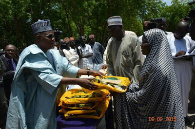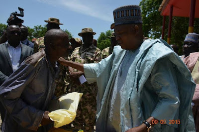 Borno state governor Kashim Shettima presented them with clothes and an undisclosed amount of money.