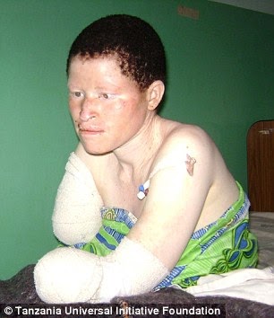 Many albinos survive the attacks, but are left without arms or legs, which can sell for as much as $4,000. Pictures from Universal Initiative Foundation |