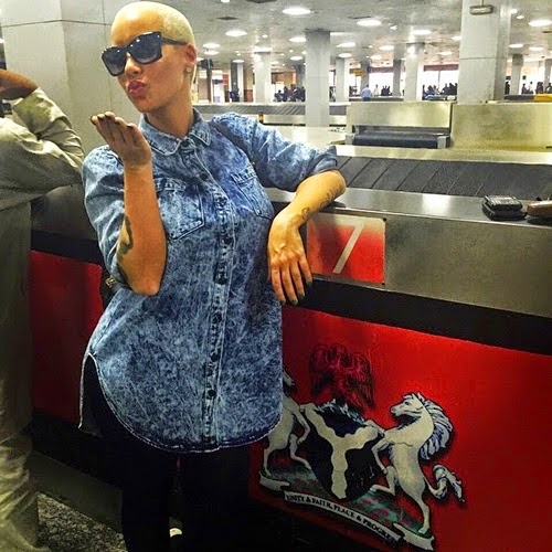 American hip hop model and controversial actress Amber Rose has touched down in Lagos for Dbanj’s 10 year anniversary concert.