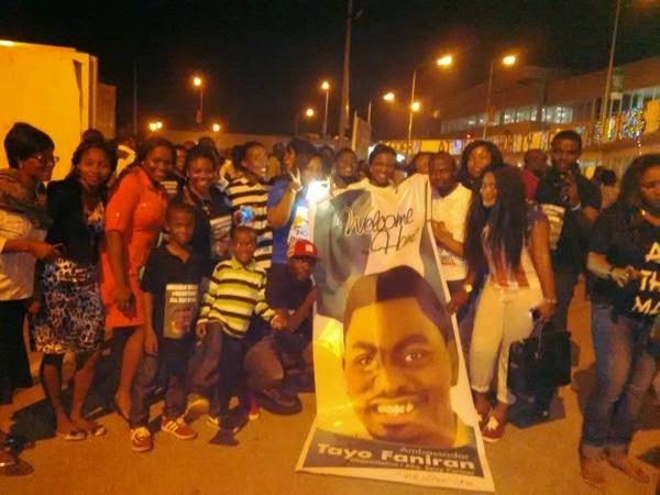 The Nigerian representative at the just concluded Big Brother Africa Hotshots competition, Tayo Faniran was received by Actor Gbenro Ajibade and many other fans at the airport.