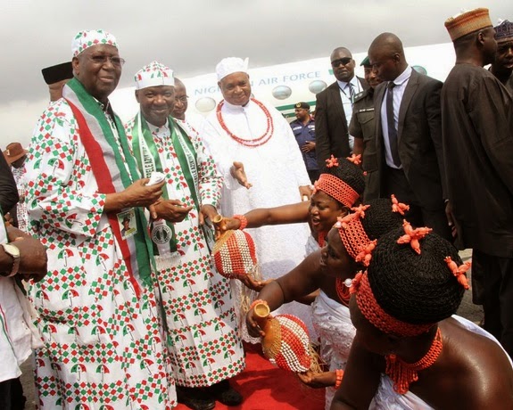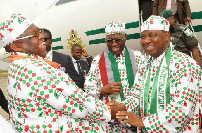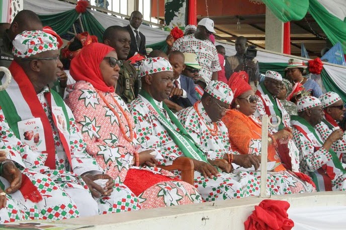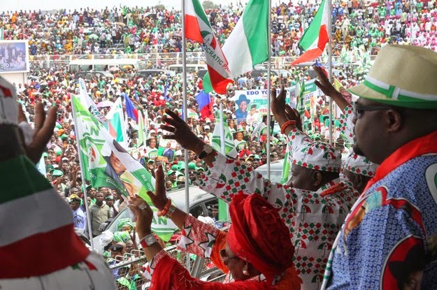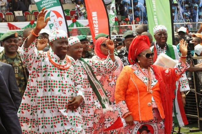 President Goodluck Jonathan and his vice storm Benin city in colourful attires during PDP Presidential Campaign Rally in Benin City, Edo.