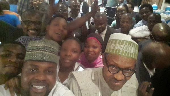The All Progressives Congress, APC, Presidential candidate, Muhammadu Buhari was in Lagos today to meet with a small group of his most passionate volunteers – and after an engaging evening of ideas, vision, and intense engagement on the future of the country, he took some time out… for his first selfie!