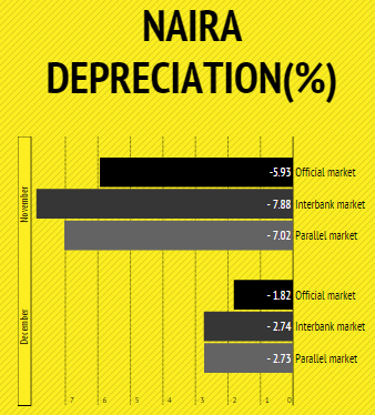 In a review of the foreign exchange market, analysts noted that the Naira depreciated across all segments of the forex markets in November and December.