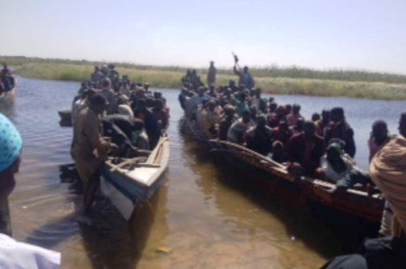 The Nigerian refugees arrive by canoe near Bagasola, Chad, after crossing Lake Chad. These set of refugees are from the recent attacks in Baga, Borno.