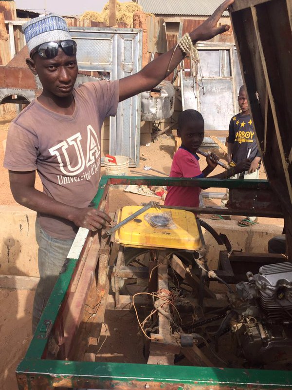 21-year-old Muzzamil Umar from Kebbi state is a car maker. He makes engines and cars from scrap materials found around Birnin Kebbi.