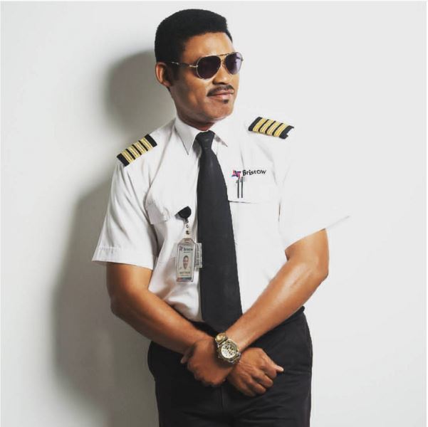 To mark the day, Omotola shared some dapper photos of her husband in his pilot uniform with her fans.