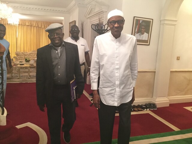 Photos: Buhari meets Tinubu in London Posted by Luckinson Akpos | Jun 16, 2016 | Uncategorized | 0 Share President Buhari who is presently in London was Vistited by APC leader, Bola Tinubu President Buhari is expected back in Nigeria this weekend. Share