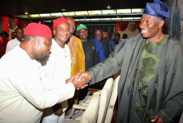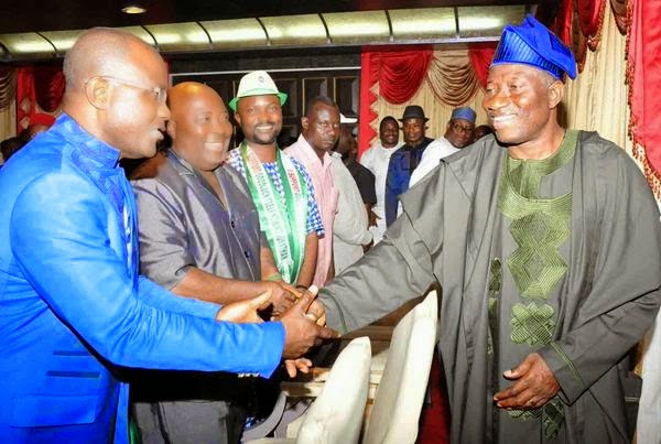 Photos: President Jonathan meets with Igbo Market Leaders in Lagos Posted by Luckinson Akpos | Feb 21, 2015 | Uncategorized | 0 Share President Jonathan on Friday February 20, 2015, had a meeting with Igbo Market Leaders, elders, and leadership at the State House in Lagos. (adsbygoogle = window.adsbygoogle || []).push({}); Share