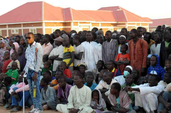 Internally Displaced Persons at Teachers’ Village Camp, Pompomari, Maiduguri during Pres. Jonathan’s visit today.