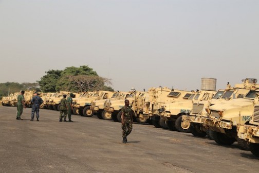 The mine-resistant vehicles handed over to Nigerian Military by the American Goverment held at Ikeja Cantonment. Photo: Idowu Ogunleye |