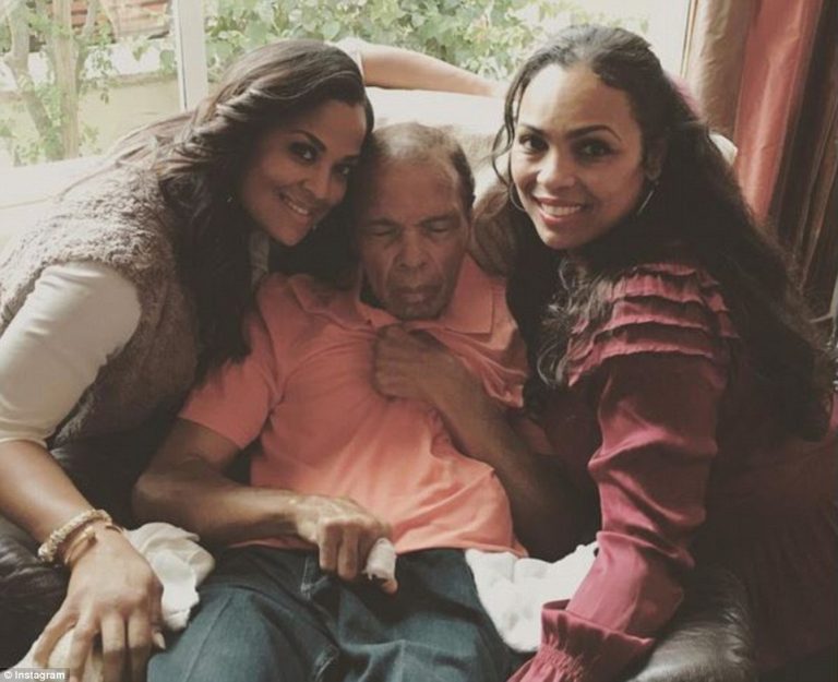 Ali with his daughter’s Laila (left) and Hana (right) at his birthday party in January |