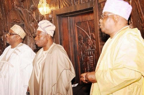 President Jonathan during his visit to the Awujale of Ijebuland’s palace in Ijebu Ode. |