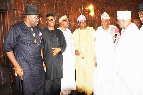 President Jonathan flagged by Muazu during visit to the Awujale of Ijebuland’s palace in Ijebu Ode |
