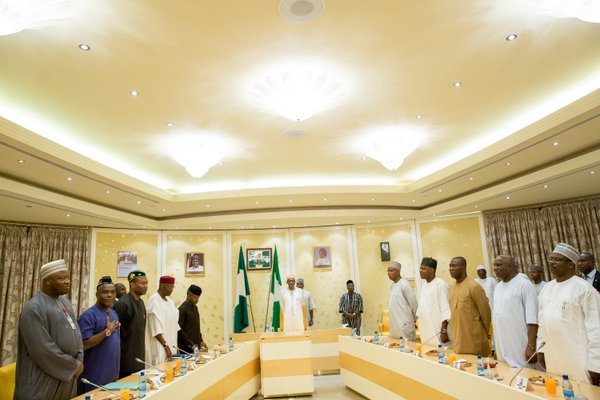 President Muhammadu Buhari today met with Principal Officers of the Nigerian Senate and House of Representatives at the State House over 2016 budget.