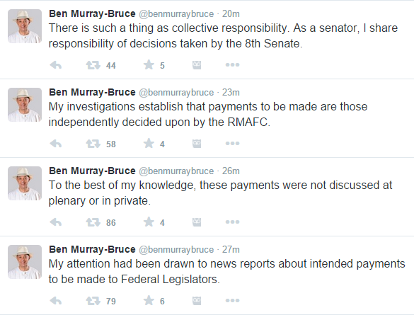 In his reaction posted on Twitter, Murray-Bruce blames Revenue Mobilization Allocation and Fiscal Commission, RMAFC and promises to remain the people’s champion.