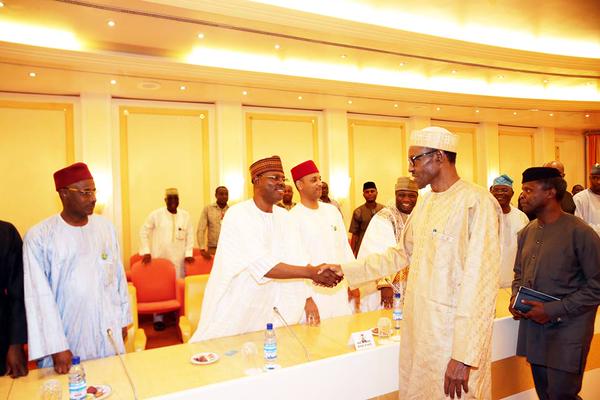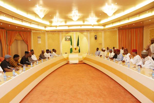 President Muhammadu Buhari, and his deputy, Yemi Osinbajo, Wednesday night met with members of the House of Representatives at the presidential villa over the party’s leadership crisis.