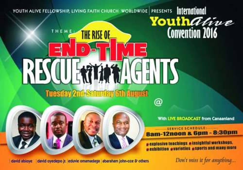 You are watching the Annual International Youth Alive Convention 2016 (Tagged “The Rise of END-TIME RESCUE AGENTS) from Faith Tabernacle, the headquarter of Living Faith Church a.k.a Winners’ Chapel, Lagos Nigeria.
